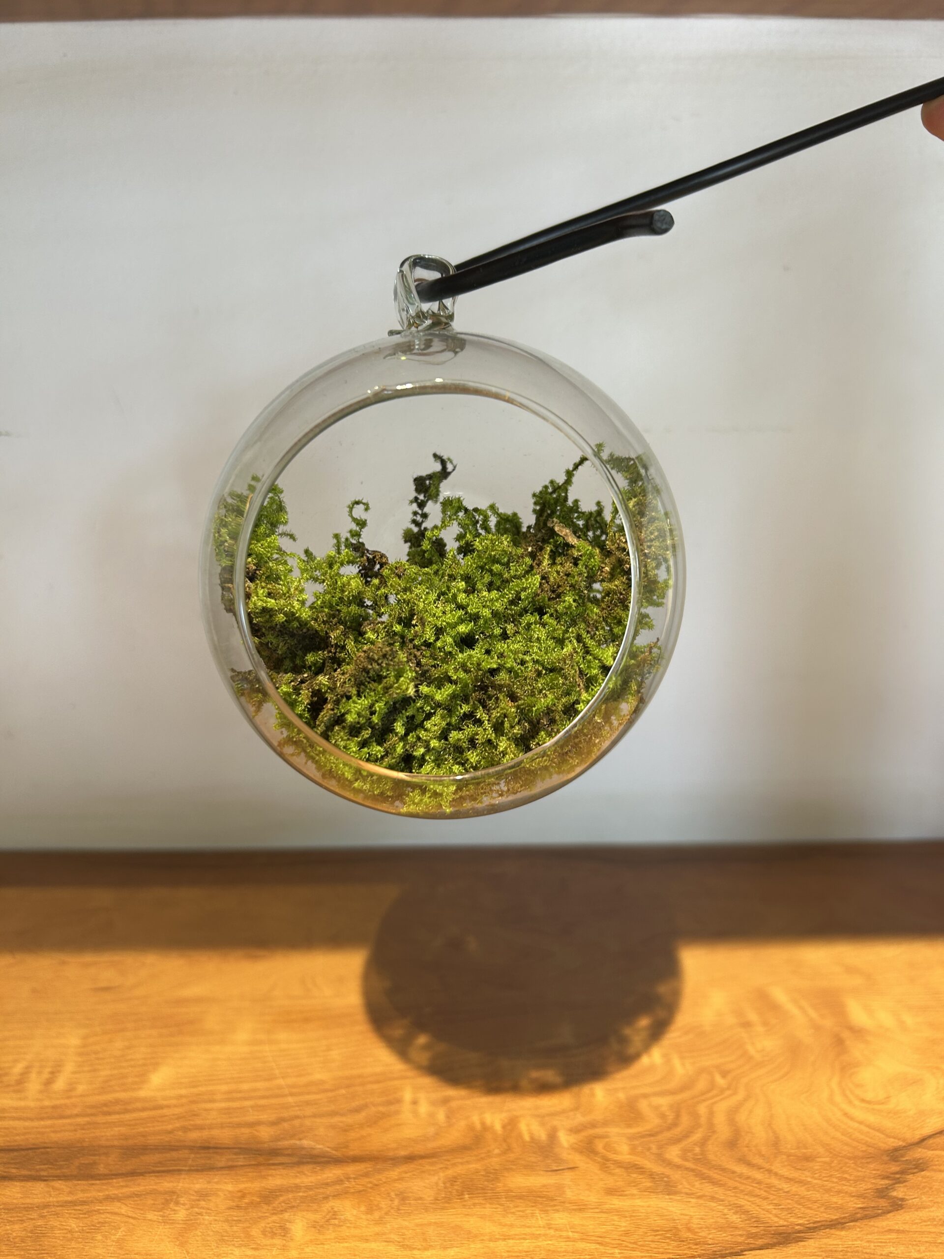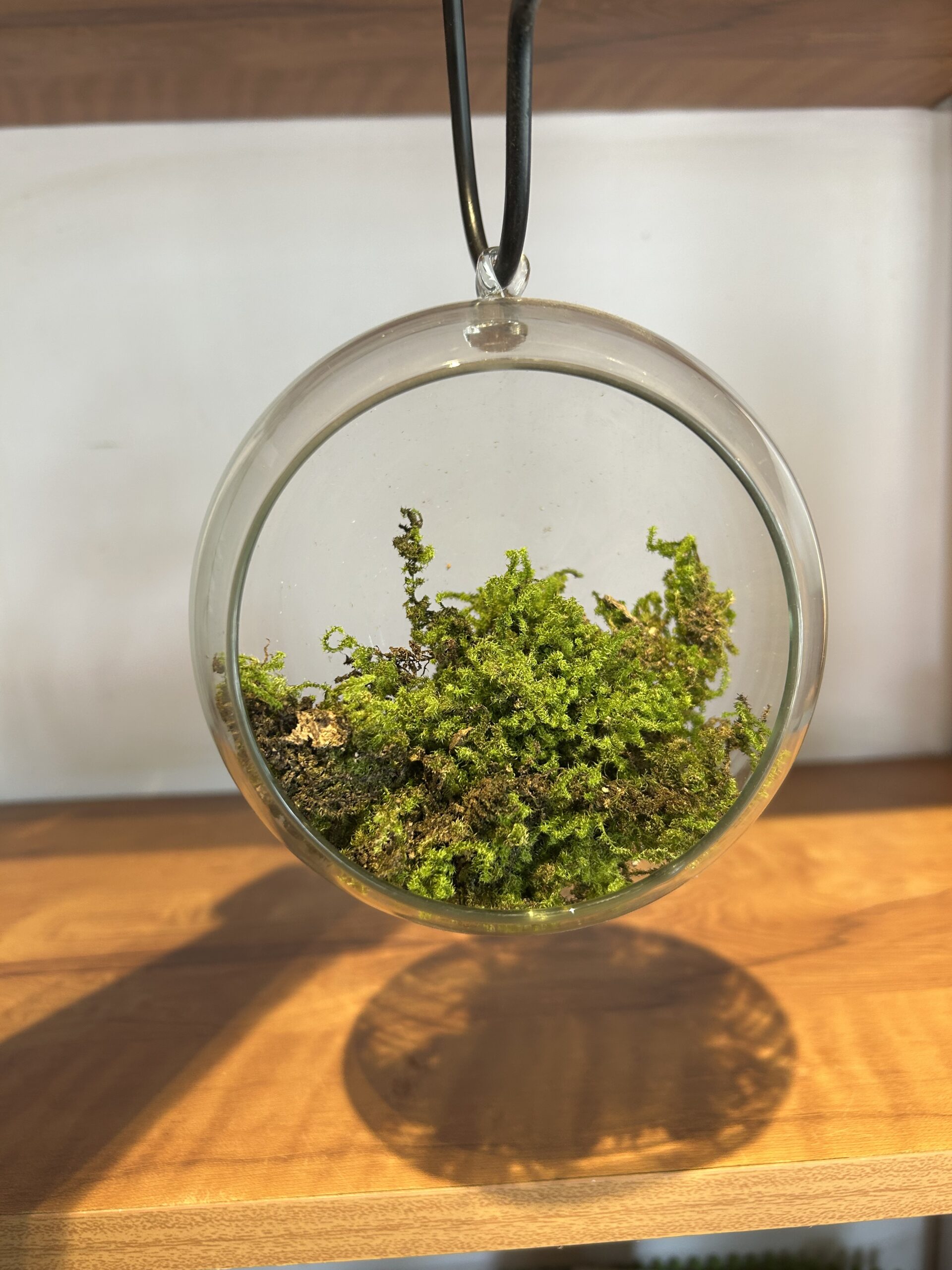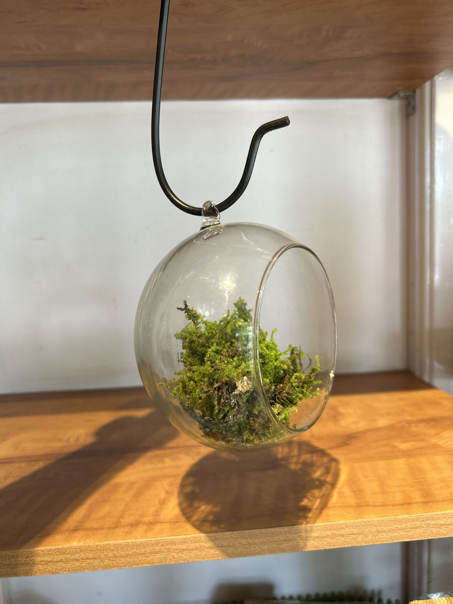 Add a touch of elegance to your space with this spherical hanging glass terrarium — a beautifully minimal glass globe designed to showcase air plants, moss, succulents, decorative sand. Featuring a front opening, it serves both as a modern home accent and a functional planter. Whether suspended or placed on a surface, this open glass terrarium creates a serene little ecosystem, perfect for bringing natural charm indoors.