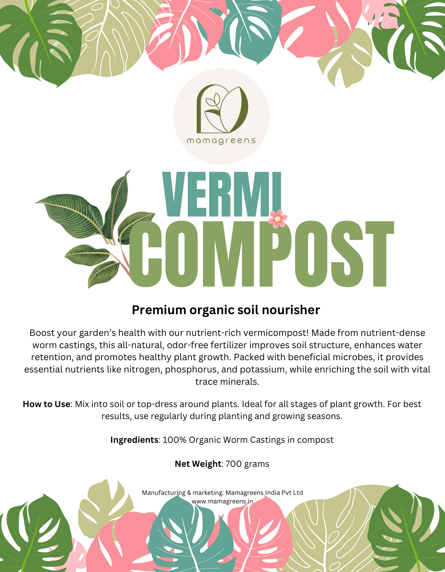 Made from nutrient-dense worm castings, this all-natural, odor-free fertilizer improves soil structure, enhances water retention, and promotes healthy plant growth. Packed with beneficial microbes, it provides essential nutrients like nitrogen, phosphorus, and potassium, while enriching the soil with vital trace minerals.