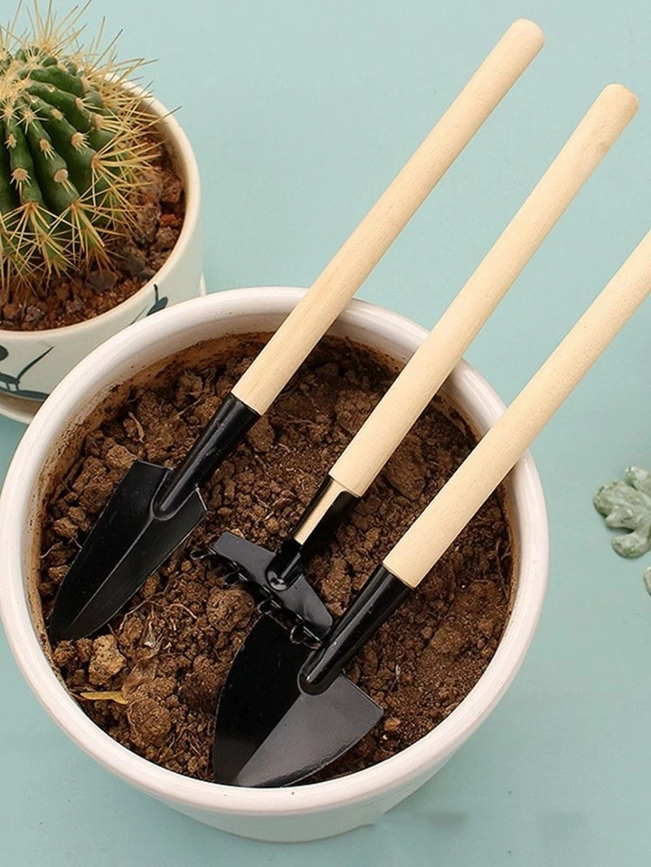 Mini Gardening Tool Set – 3-Piece Kit ( Hand Cultivator, trowel,  fork) for Indoor & Balcony Gardens.